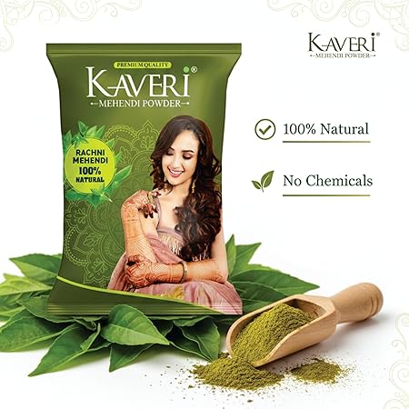 Best Quality & Advantage - Kaveri Mehendi powder is extracted from 100% natural henna leaves and is free from any unnatural ingredients. As it takes care of your hair in every aspect, it also controls the hair fall, being a natural colour, covers grey hair, makes hair thick, controls scalp itchiness, improves hair growth and provides the dark colour.